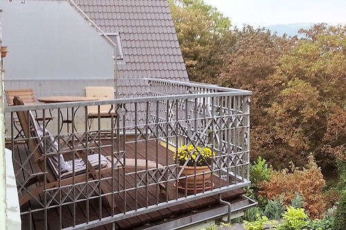 großer Südbalkon zum Siebengebirge, lichtdurchflutetes Gästezimmer mit Einzelbett 0,90m, Bettwäsche und Handtücher vorhanden, kostenloser WLAN Internetanschluss, Haustiere nicht erwünscht, Nichtraucher, max. 1 Person, Mindestmietdauer 6 Monate