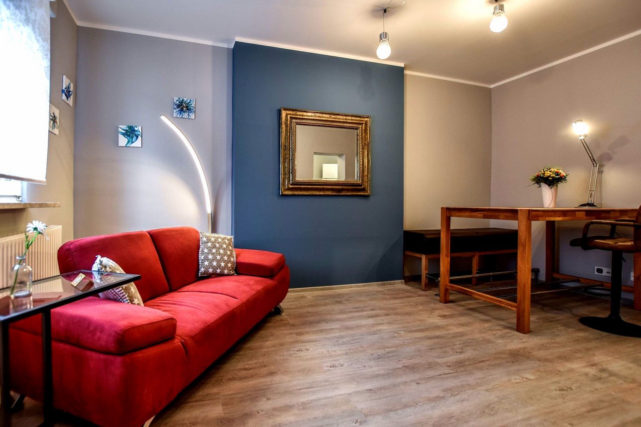 Moderne Möblierung, Laminat, separate Einbauküche, Badezimmer mit Dusche, Smart TV, WLAN Internetanschluss, Soundbar, Waschmaschine im Keller