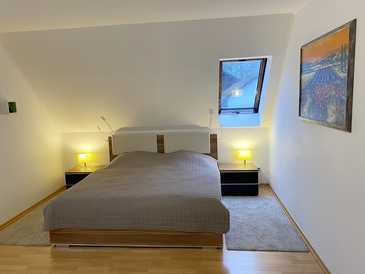 Garten mit Pool, Wohn-Ess-Zimmer mit Schlafsofa, weiteres Zustellbett möglich, Schlafzimmer mit Doppelbett 180cm , Ankleidezimmer, Bettwäsche und Handtücher vorhanden, inkl. WLAN Internetanschluss, inkl. Stellplatz mit Wallbox, Tierhaltung nicht gestattet, Nichtraucher, max. 4 Personen, Mindestmietzeit 6 Monate