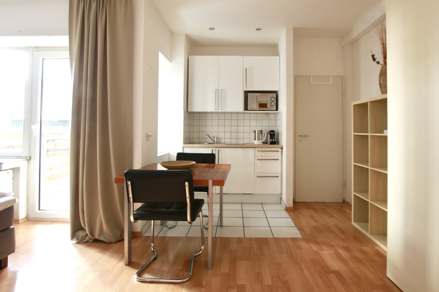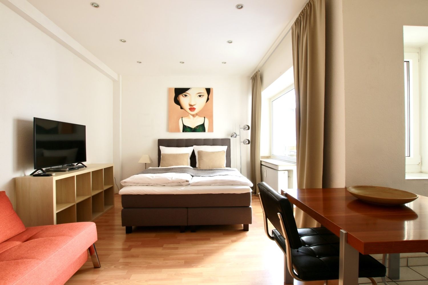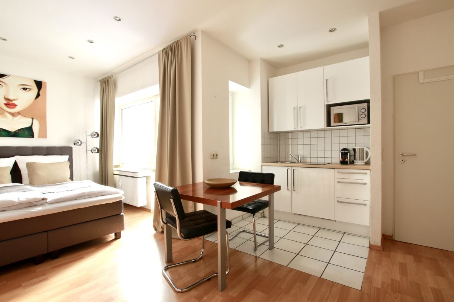 Balkon, Wohn-/ Schlafzimmer mit französischem Bett 1,40 m, Bettwäsche und Handtücher vorhanden, Tierhaltung nicht gestattet, Rauchen nur auf dem Balkon gestattet, inkl. WLAN Internetanschluss, Reinigungs- und Wäscheservice gegen Aufpreis optional, Mindestmietdauer 3 Monate