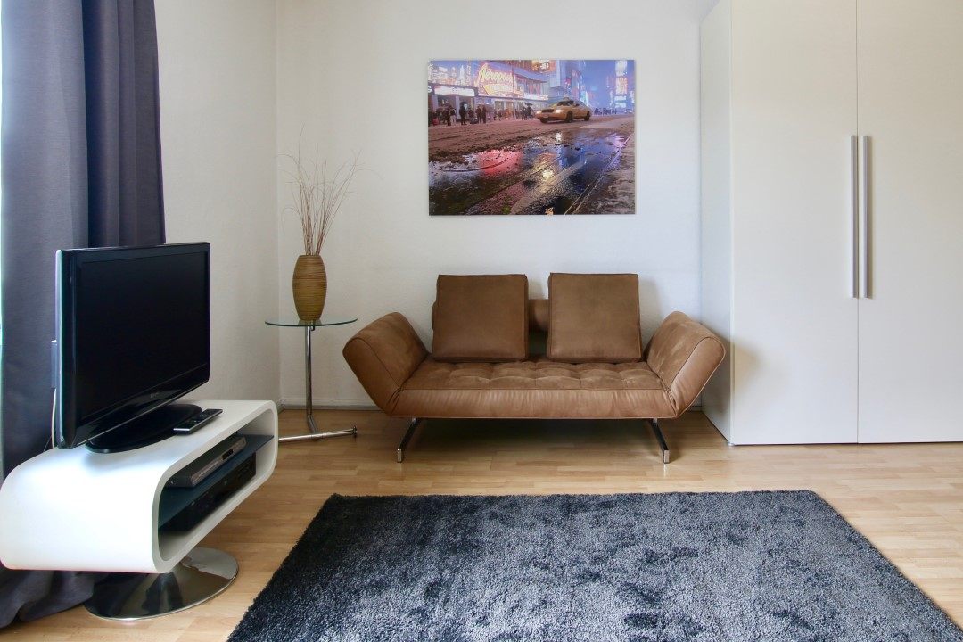 Balkon, Wohn-/ Schlafzimmer mit Doppelbett, Bettwäsche und Handtücher vorhanden, WLAN-Internetanschluss inkl., Reinigungsservice optional, Nichtraucher, max. 2 Personen, Mindestmietdauer 6 Monate