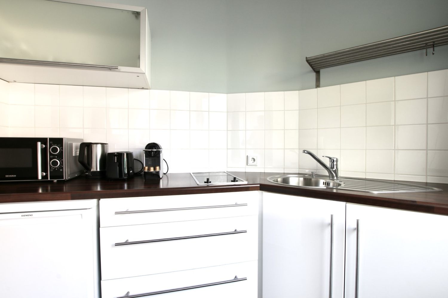 • moderne Möblierung, Laminatboden, integrierte Singleküche mit Herd, Wannenbad, Kabel-TV, WLAN- Internetanschluss, Waschmaschine im Keller