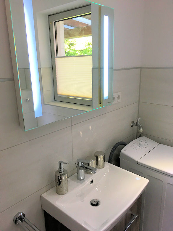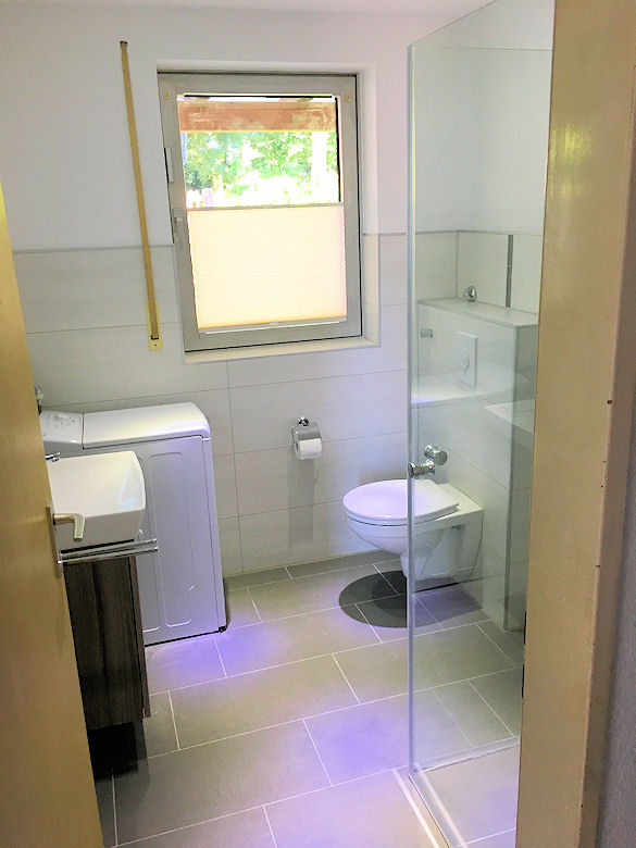 moderne Möblierung, Laminat- und Fliesenboden, separate Einbauküche, Tageslicht Duschbad, Flatscreen, SAT-T, DVD, W-Lan Internetanschluss, Waschmaschine im Badezimmer