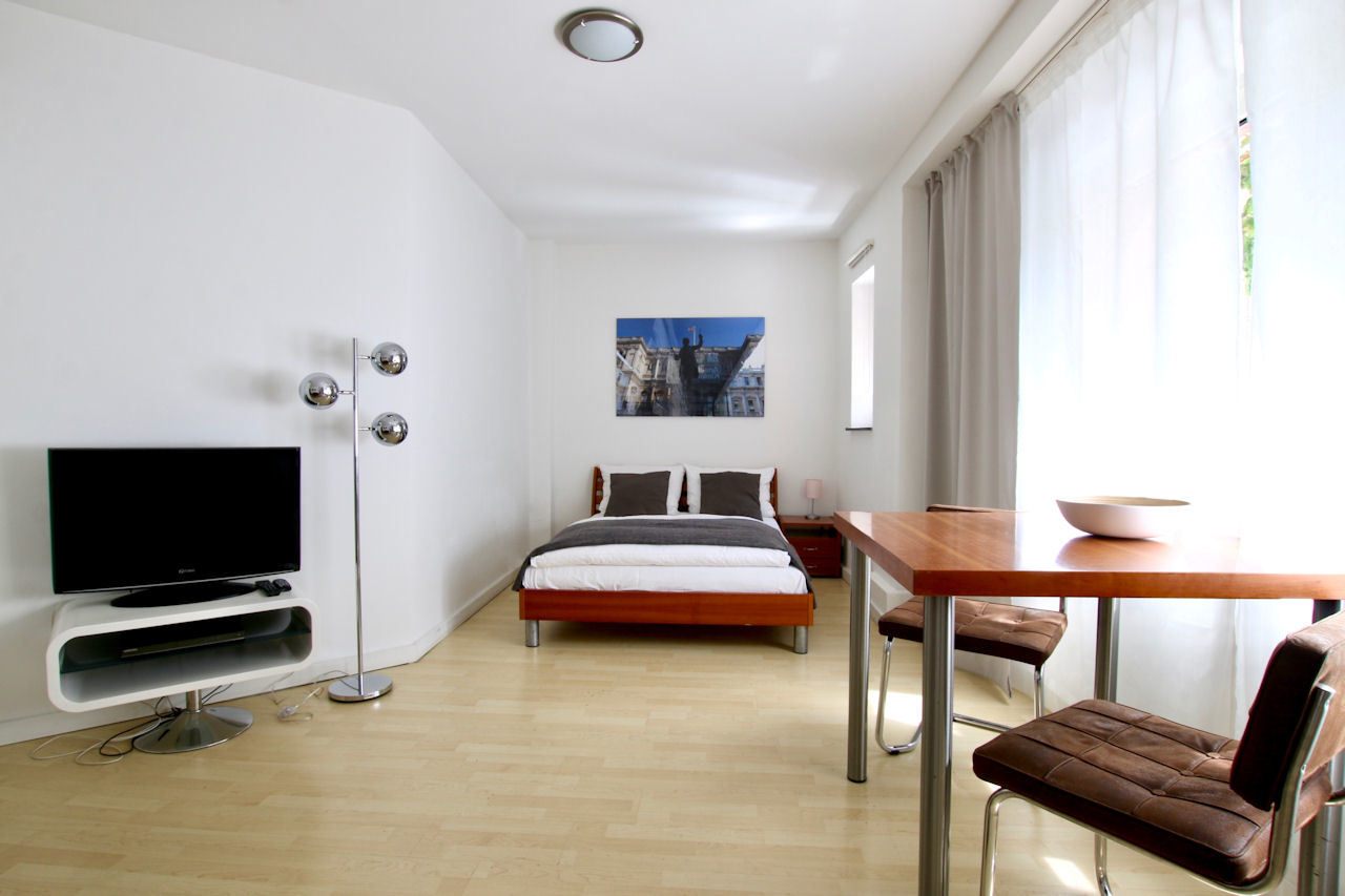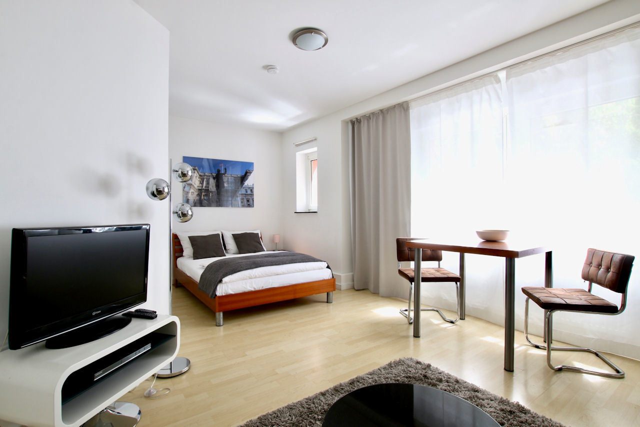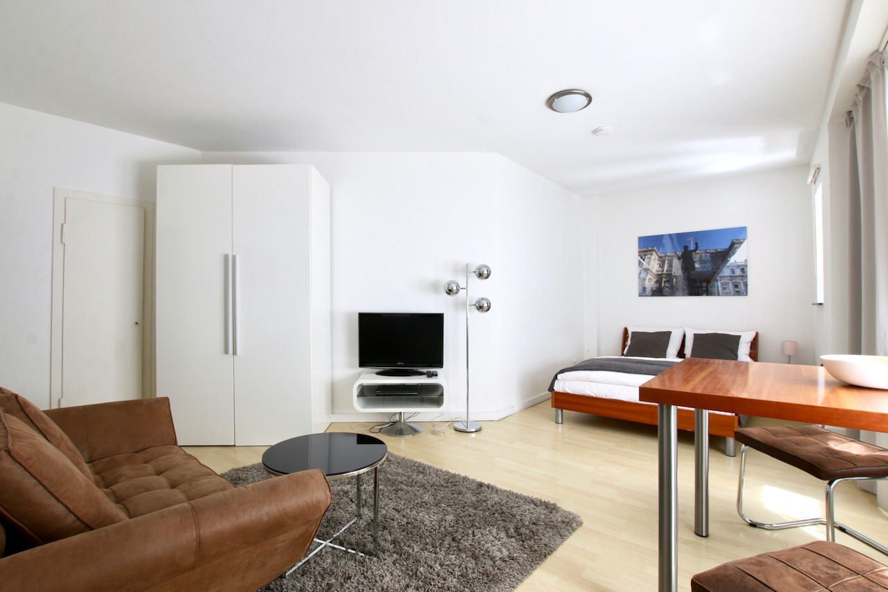 Wohn/Schlafzimmer mit Doppelbett 1,60 m, Bettwäsche- und Reinigungsservice optional gegen Aufpreis, WLAN optional gegen Aufpreis, Mindestmietdauer 2 Monate,