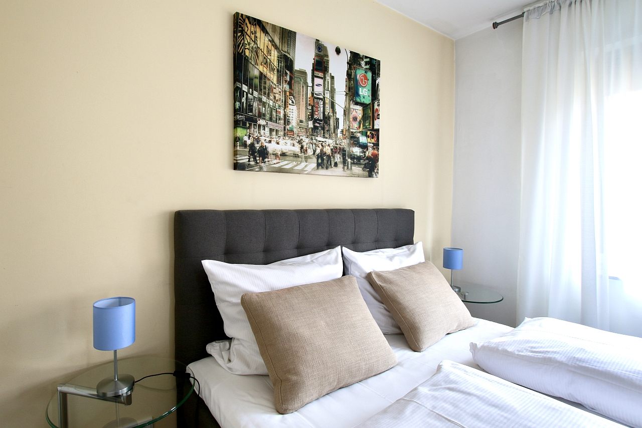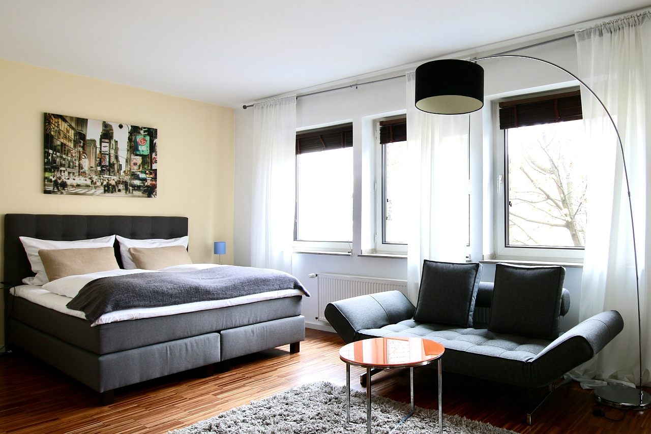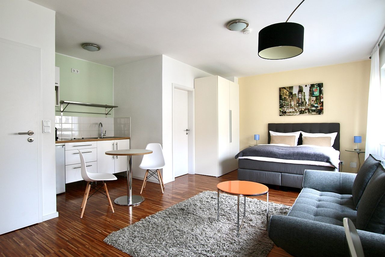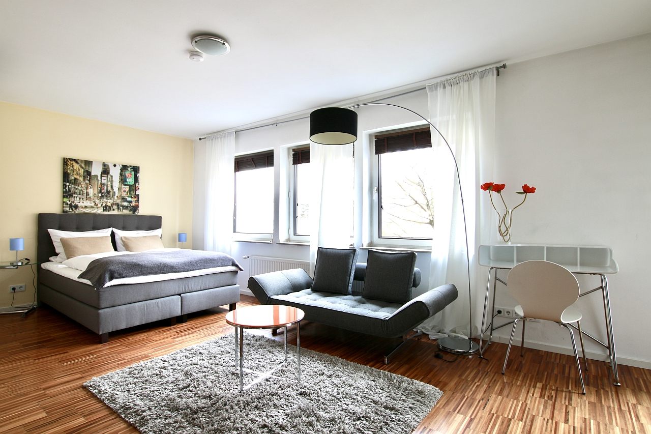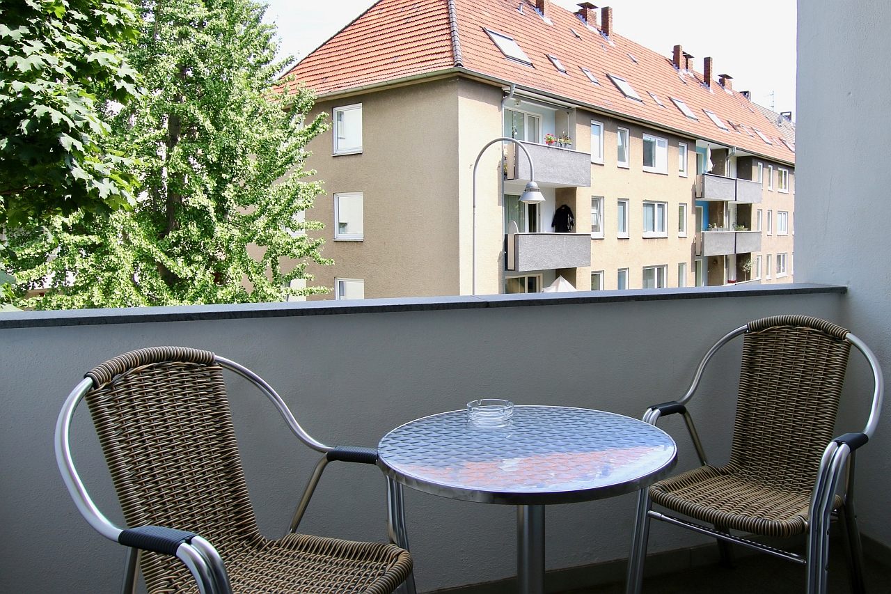 Balkon, Wohn-/Schlafzimmer mit Doppelbett 1,60 m, Bettwäsche- und Reinigungsservice optional gegen Aufpreis, Internet optional gegen Aufpreis, Tierhaltung nicht gestattet, Mindestmietdauer 2 Monate,