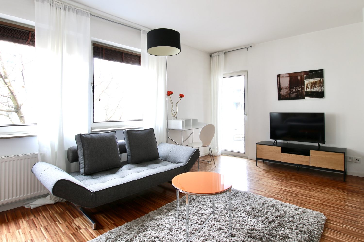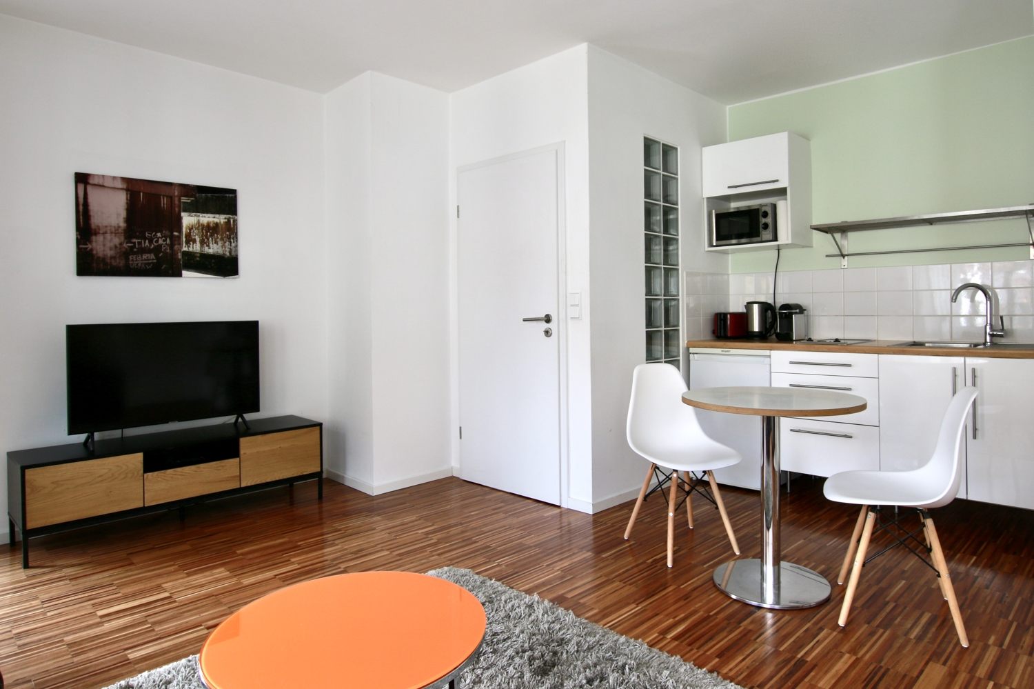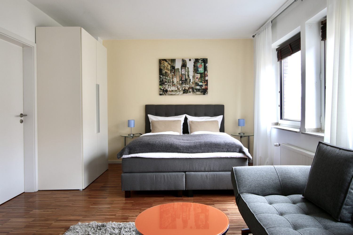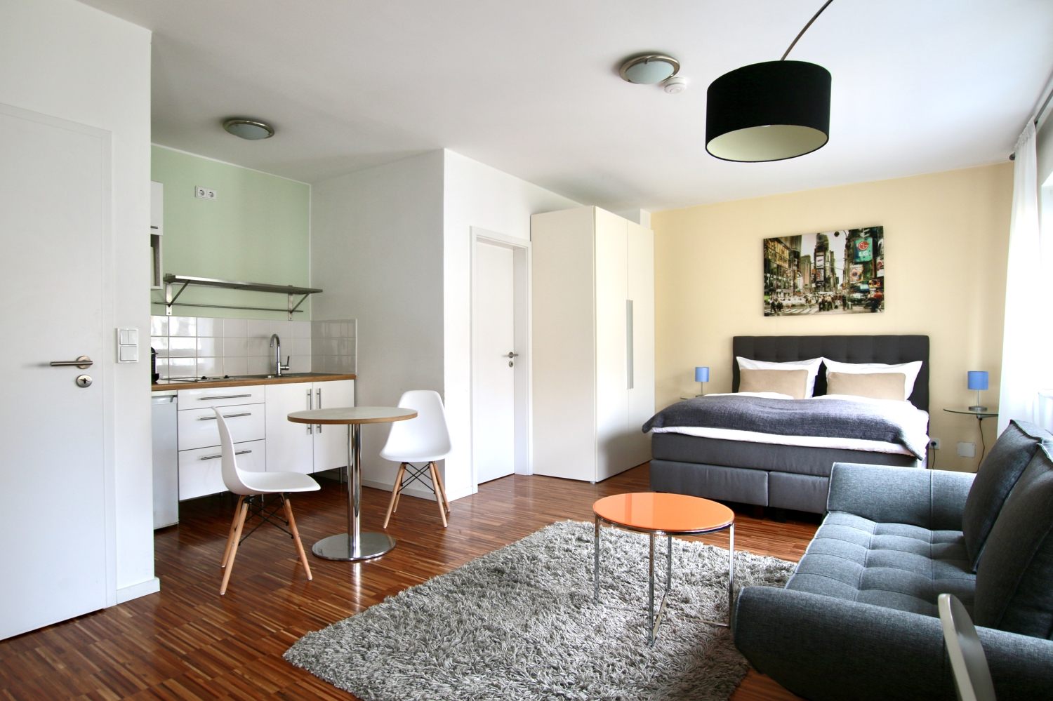 Balkon, Wohn-/Schlafzimmer mit Doppelbett 1,60 m, Bettwäsche- und Reinigungsservice optional gegen Aufpreis, Internet optional gegen Aufpreis, Tierhaltung nicht gestattet, Mindestmietdauer 2 Monate,