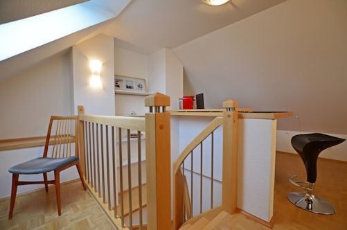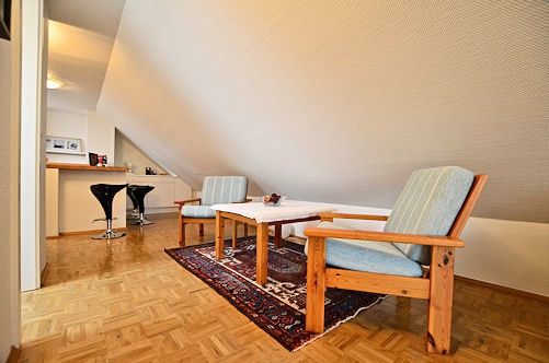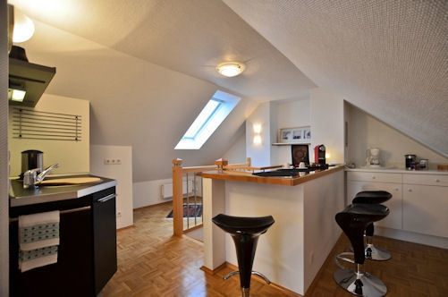 Moderne Möblierung, Parkett,integrierte Teeküche mit Frühstückstheke für kleine Mahlzeiten, mit Mikrowelle, Kühlschrank und einer Induktionsplatte,Tageslicht Duschbad,Kabel-TV, W-LAN- Internetanschluss , Münz-Waschmaschine und -Trockner zur Mitbenutzung im Keller
