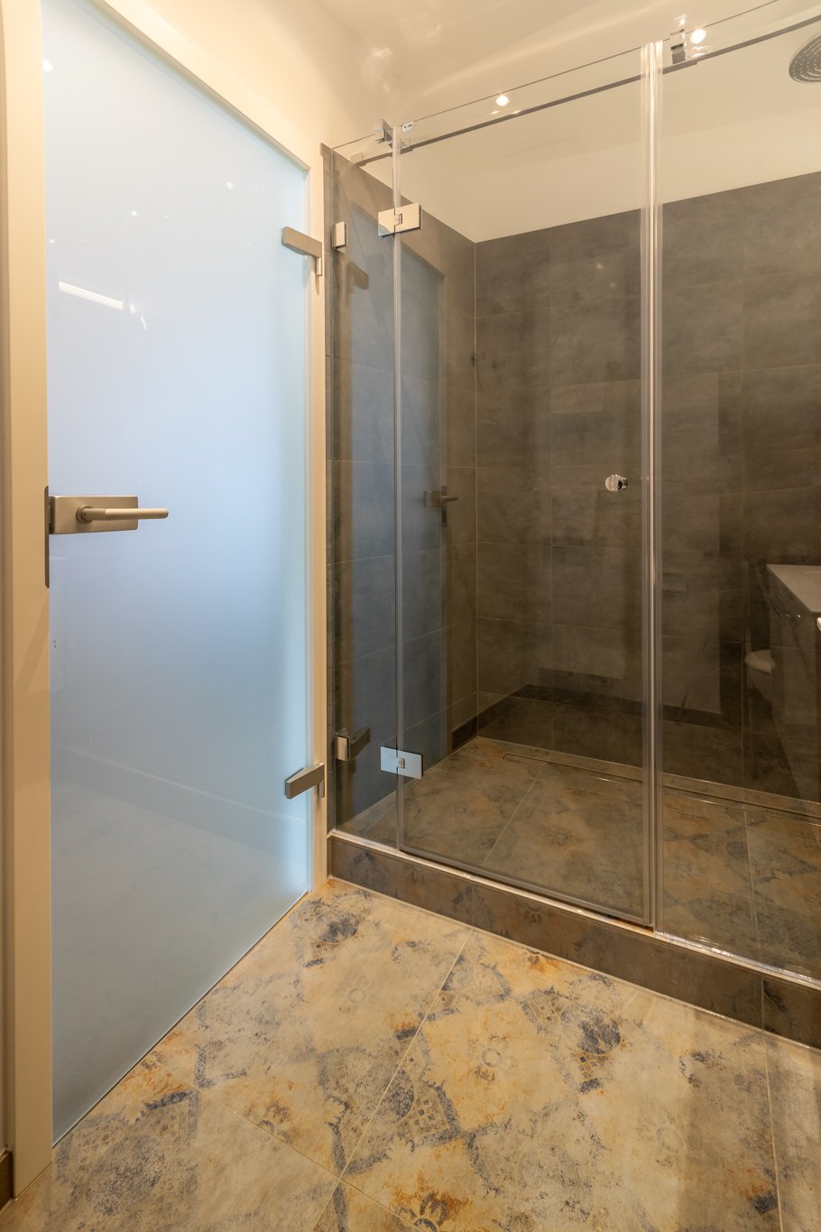 - bodentiefe Fenster, elektrische Außen-Rolläden, Verdunkelungsvorhänge