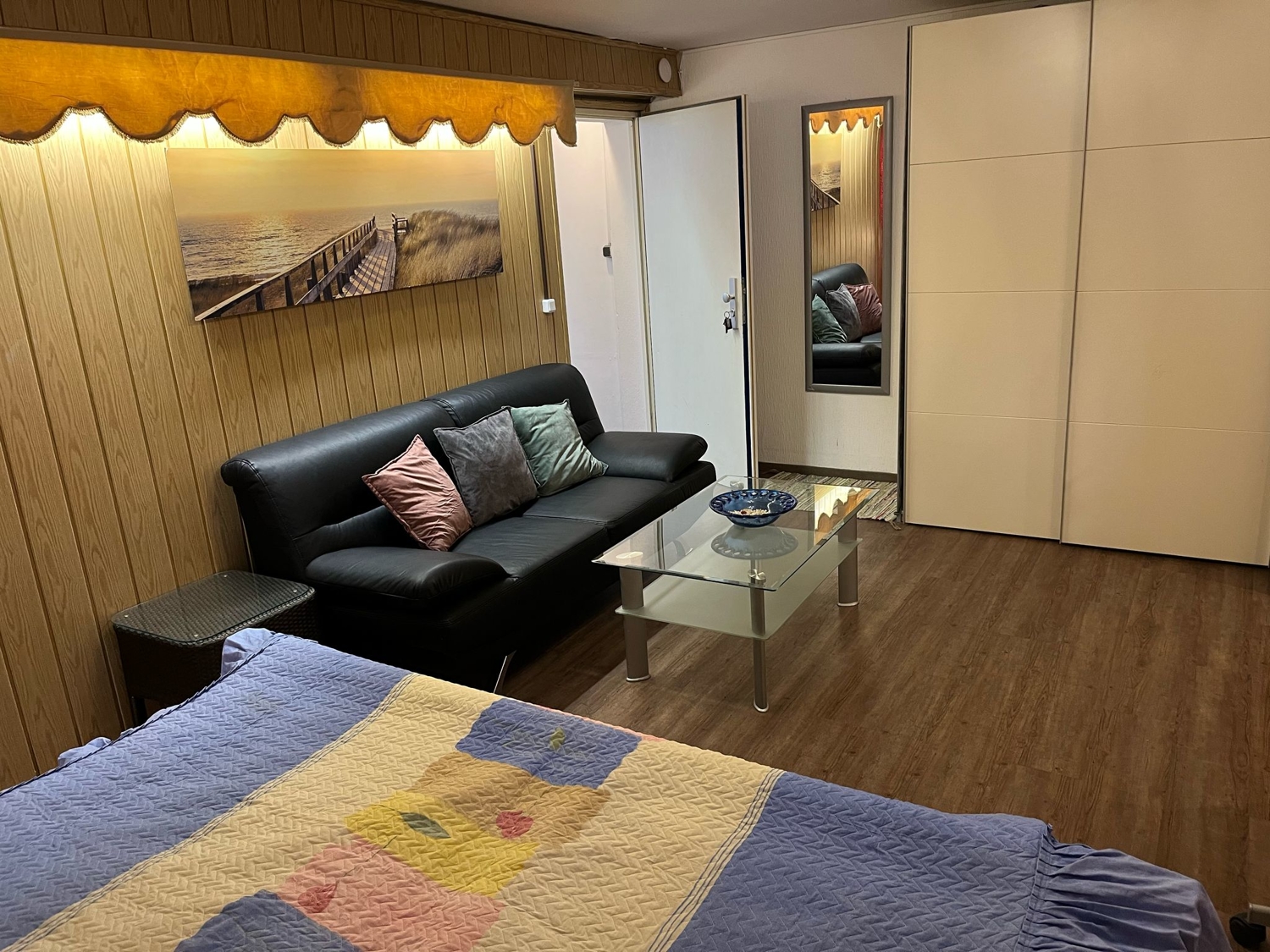 modern and timeless furniture, carpeted and tiled floor, separated kitchenette, bathroom with shower, sat-tv, WiFi internet access, washing machine