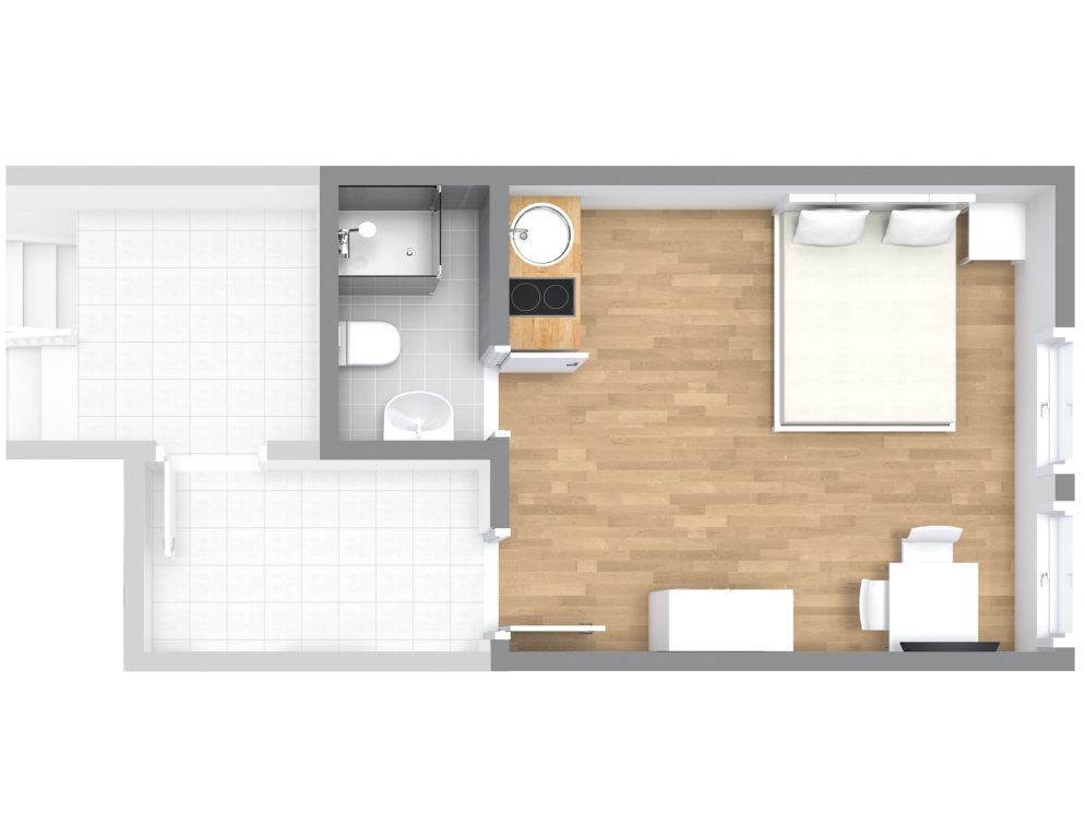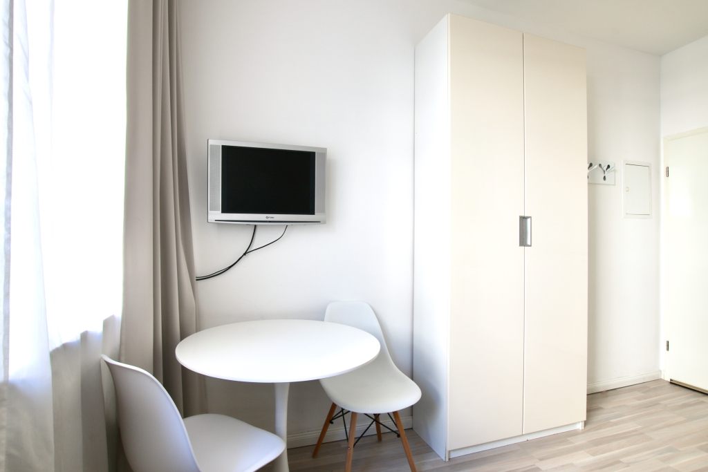 Bedroom with queen-size bed 1.40 m, bed linen and towels available, pets by arrangement, non-smoking, incl. WiFi Internet access, cleaning and laundry service against a surcharge optionally, minimum term of lease 6 months, plus final cleaning 140,00 €