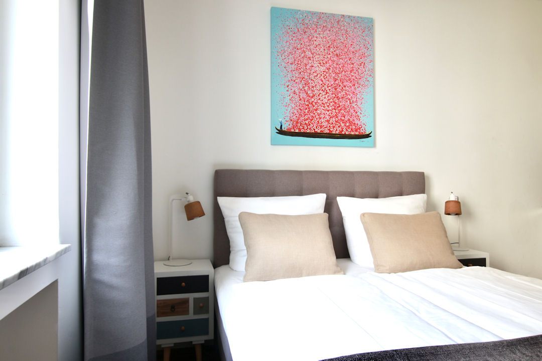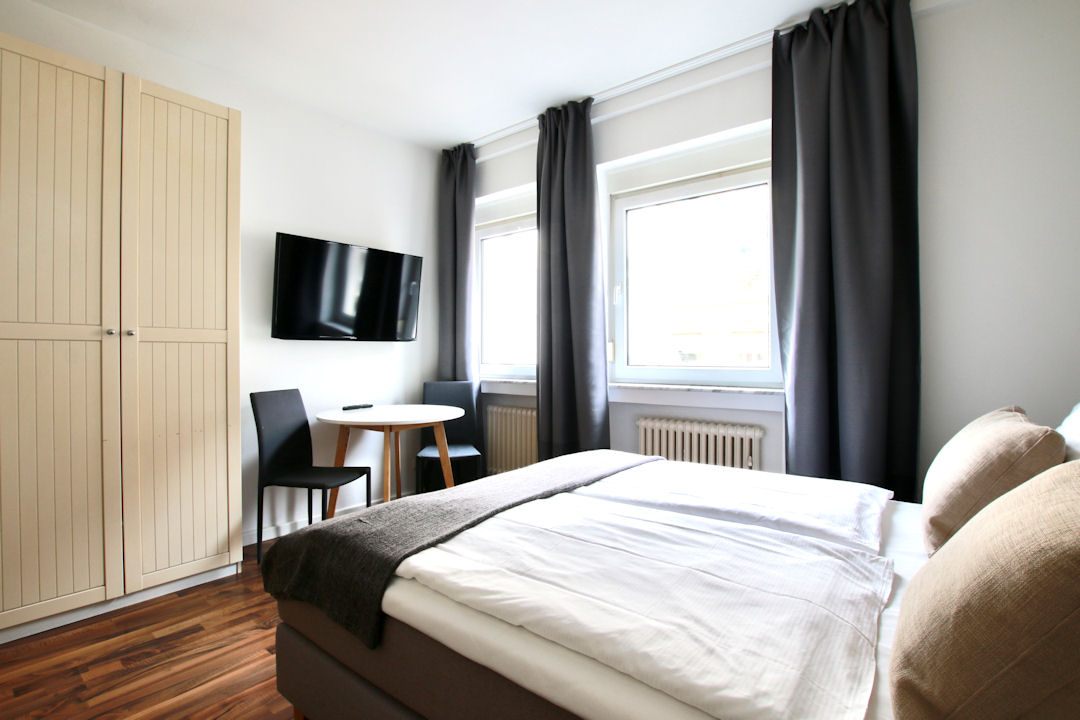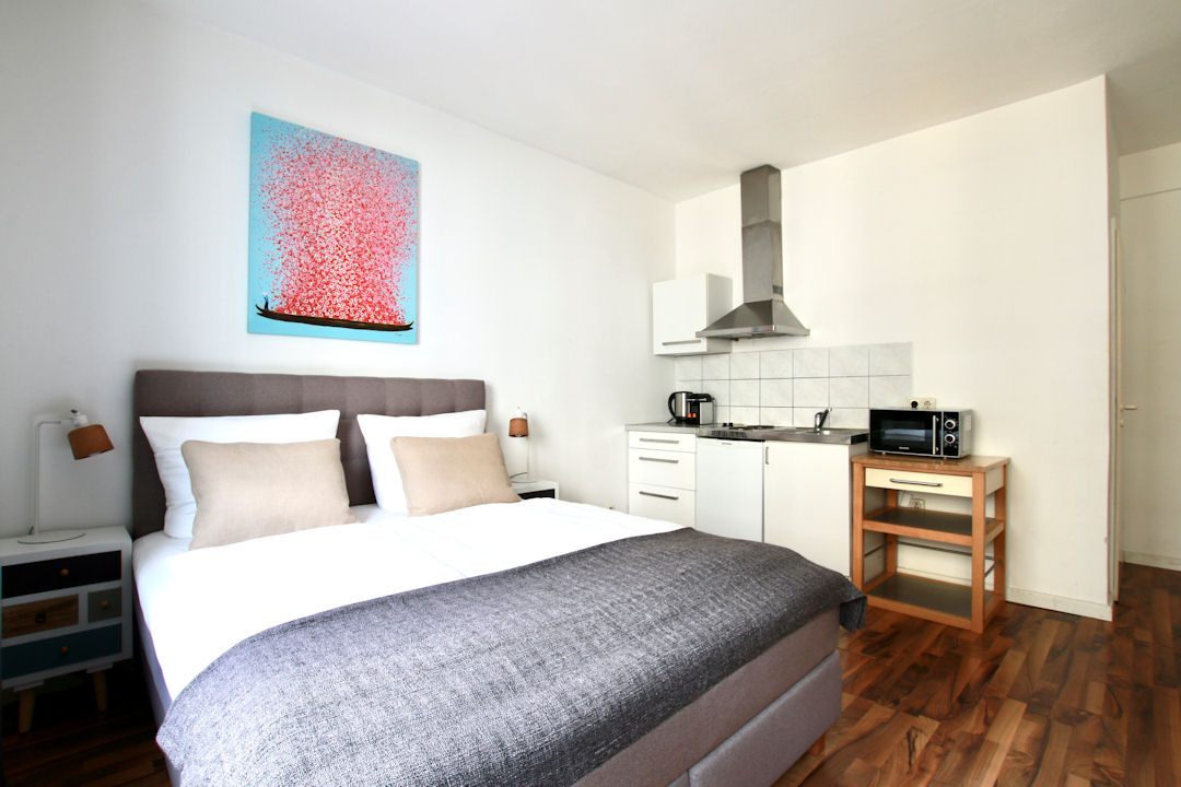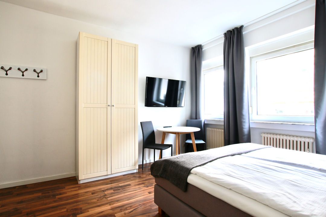 Bedroom with queen-size bed 1.40 m, bed linen and towels available, incl. weekly change of laundry, incl. telephone and internet flatrate, parking lot optionally, minimum term of lease 6 months,plus final cleaning 140,00 €