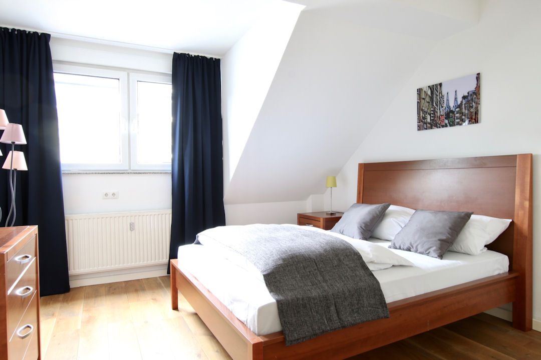 Balcony, living/bedroom with double bed 1.60 m, bed linen and towels available, smoking only on the balcony, WiFi internet connection incl., cleaning and laundry service against a surcharge optionally, minimum term of lease 6 months, plus final cleaning 220,00 Euro