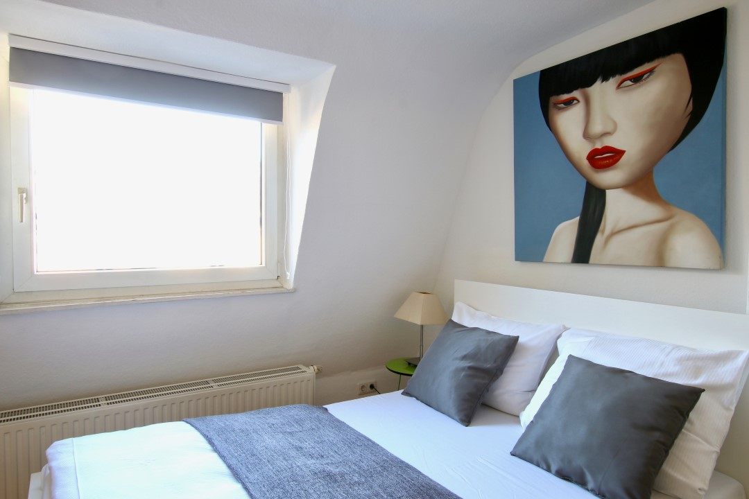 Balcony, bedroom with queen size bed 1.40 m, bed linen and towels available, pets not allowed, smoking only on the balcony, WiFi internet connection incl., cleaning and laundry service against a surcharge optionally, minimum term of lease 6 months