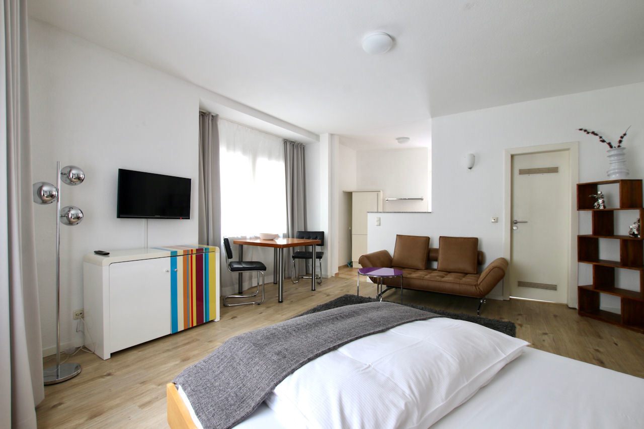 Living/bedroom with queen-size bed, change of bed linen and cleaning service on request at an extra charge, WiFi internet connection incl., minimum term of lease 2 months, shorter rental period on request, plus final cleaning 180,00 €