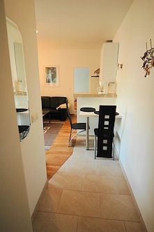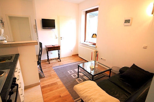 Living room, bedroom with single bed 1,40 m, bed linen and towels available, pets not allowed, non-smoking, max. 1 person, minimum term of lease 6 months
