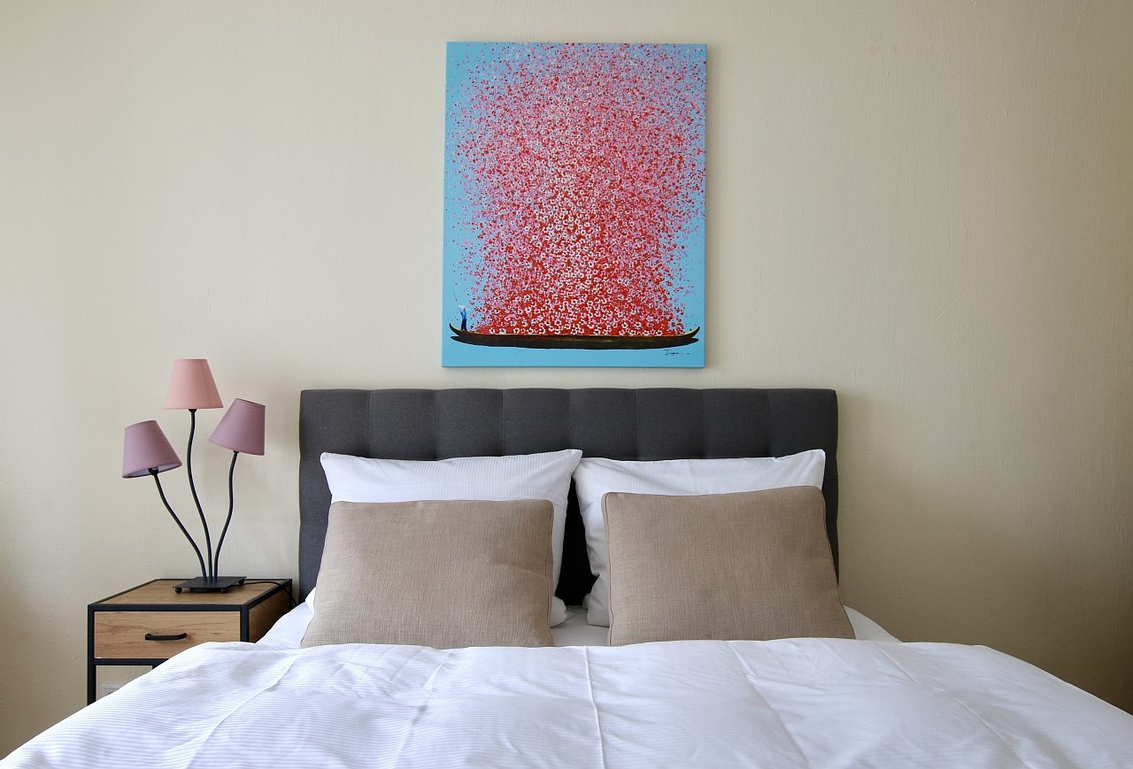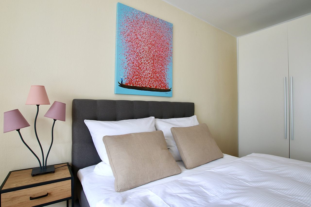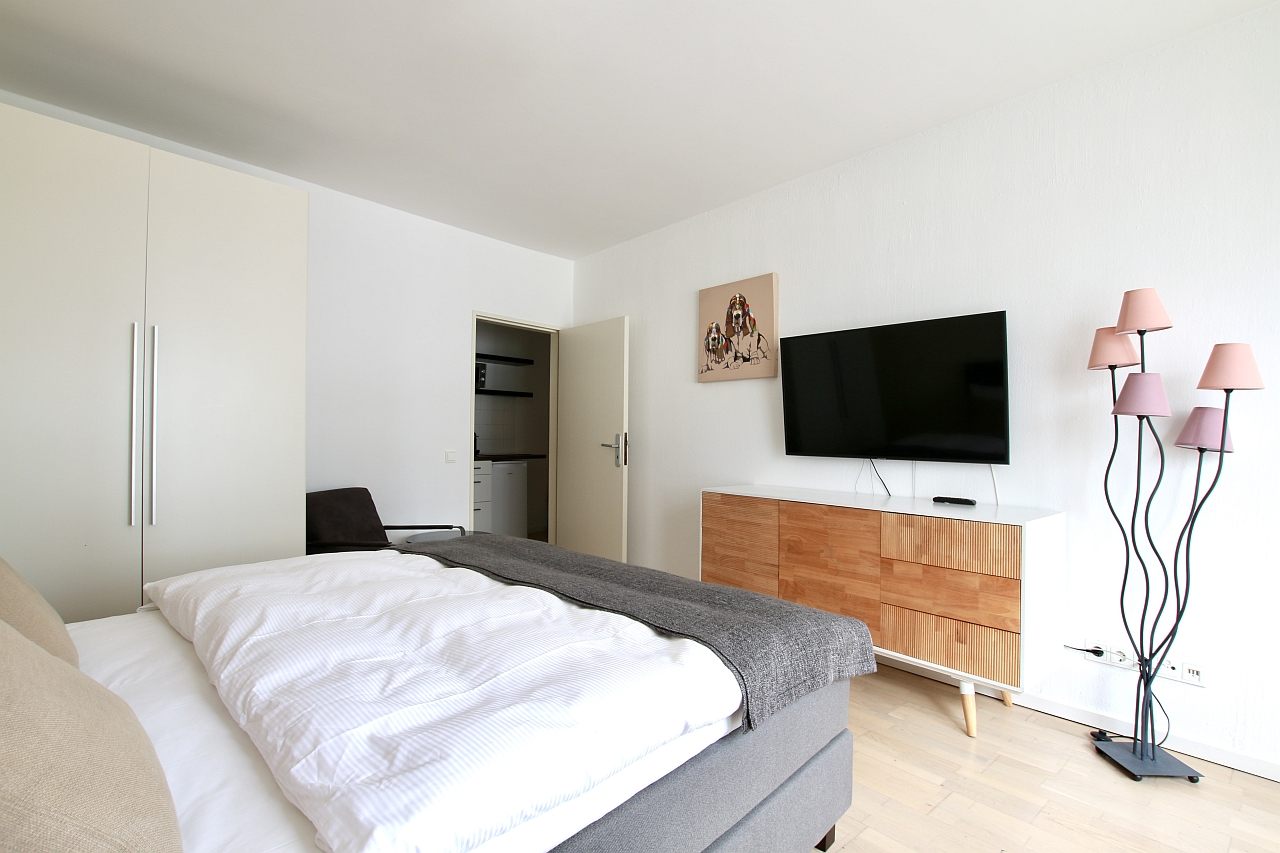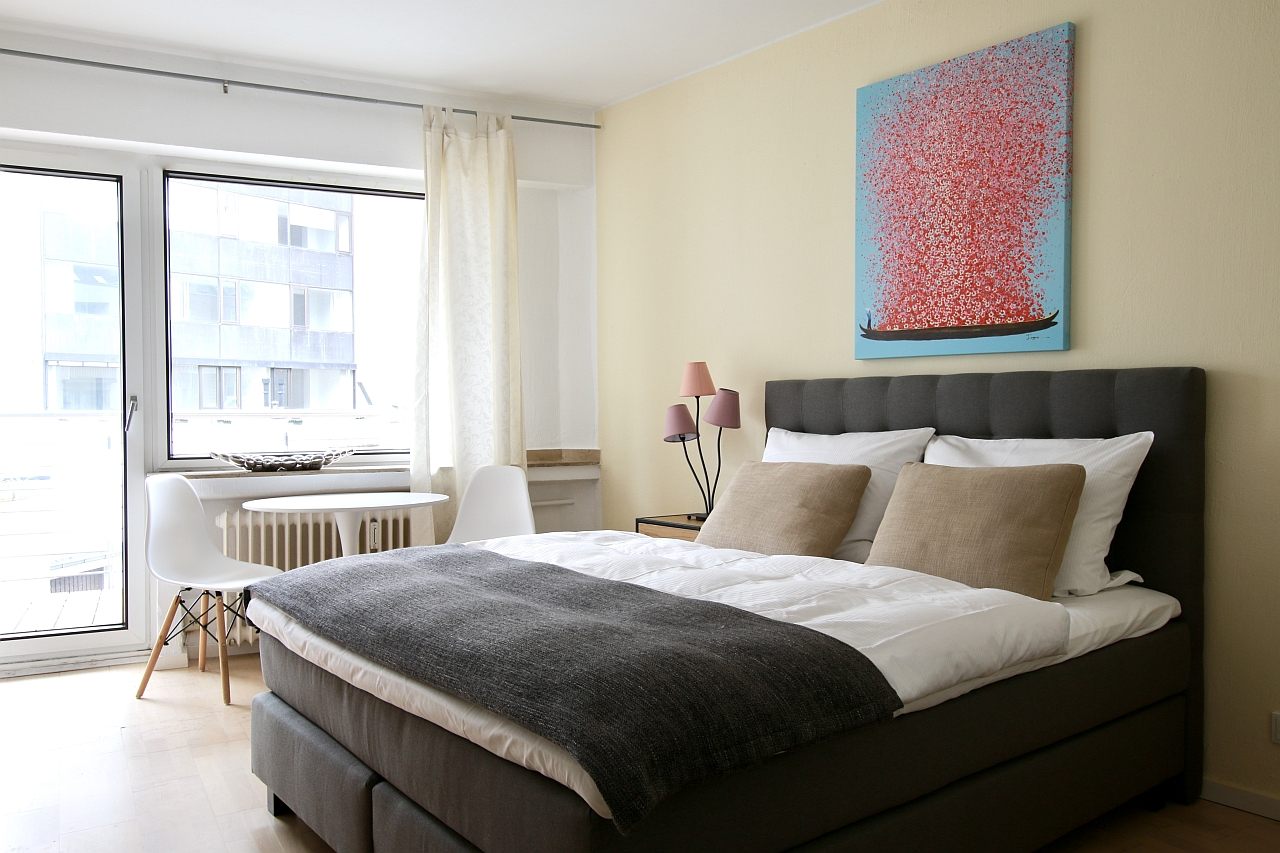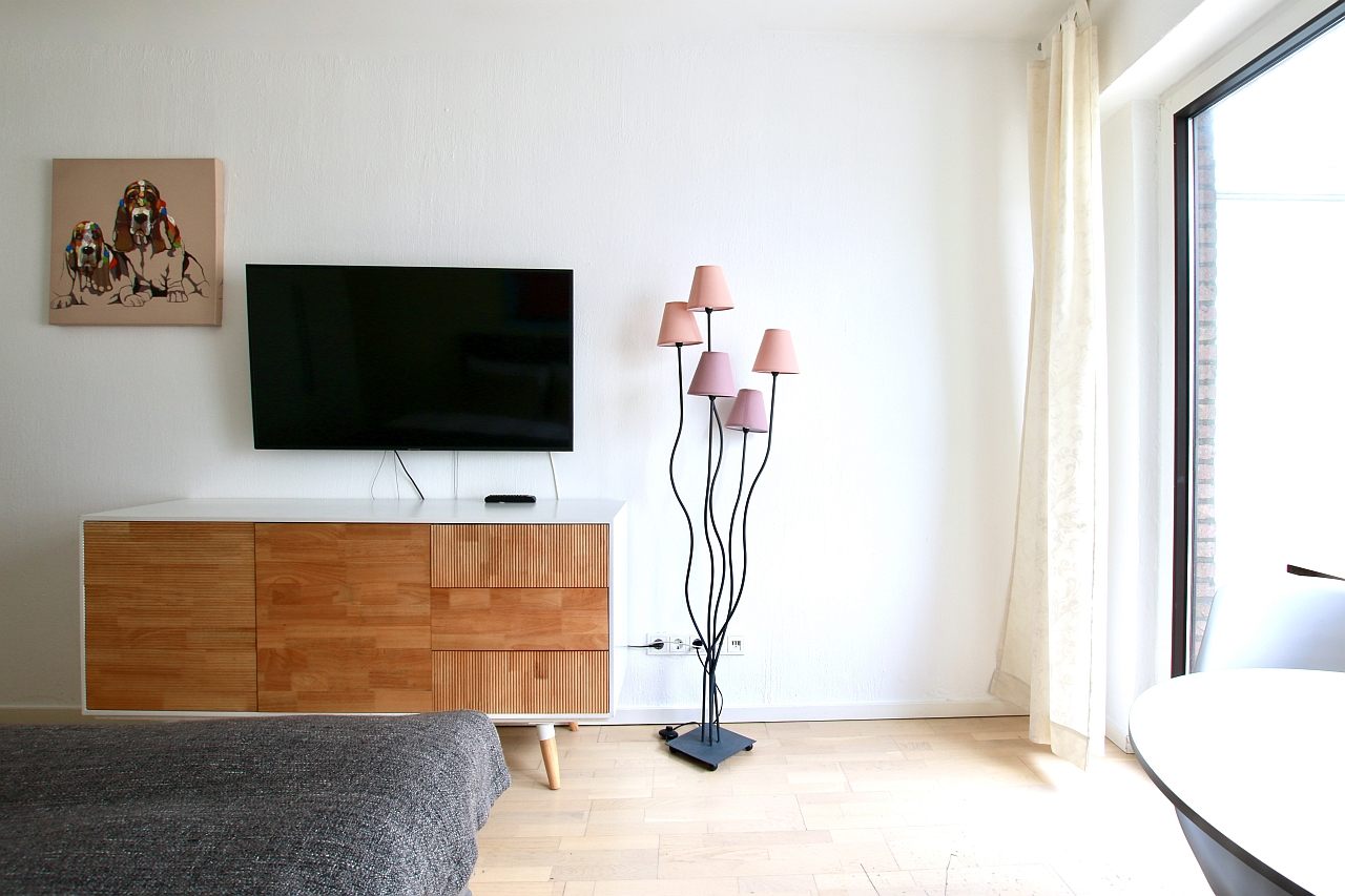 Balcony, living-/bedromm with double-bed 1.40 m, bed linen and cleaning service optionally, washing room in the basement, pets are not allowed, DSL WiFi 8,00 Euro/week optional, minimum term of lease 2 months, plus final cleaning 180,00 €