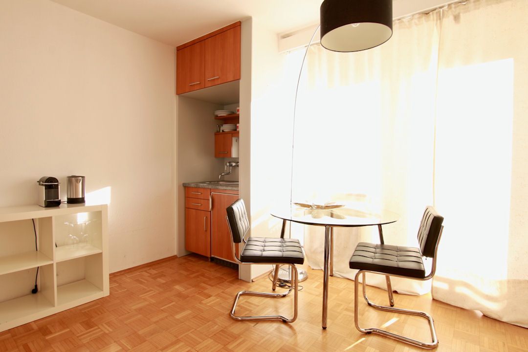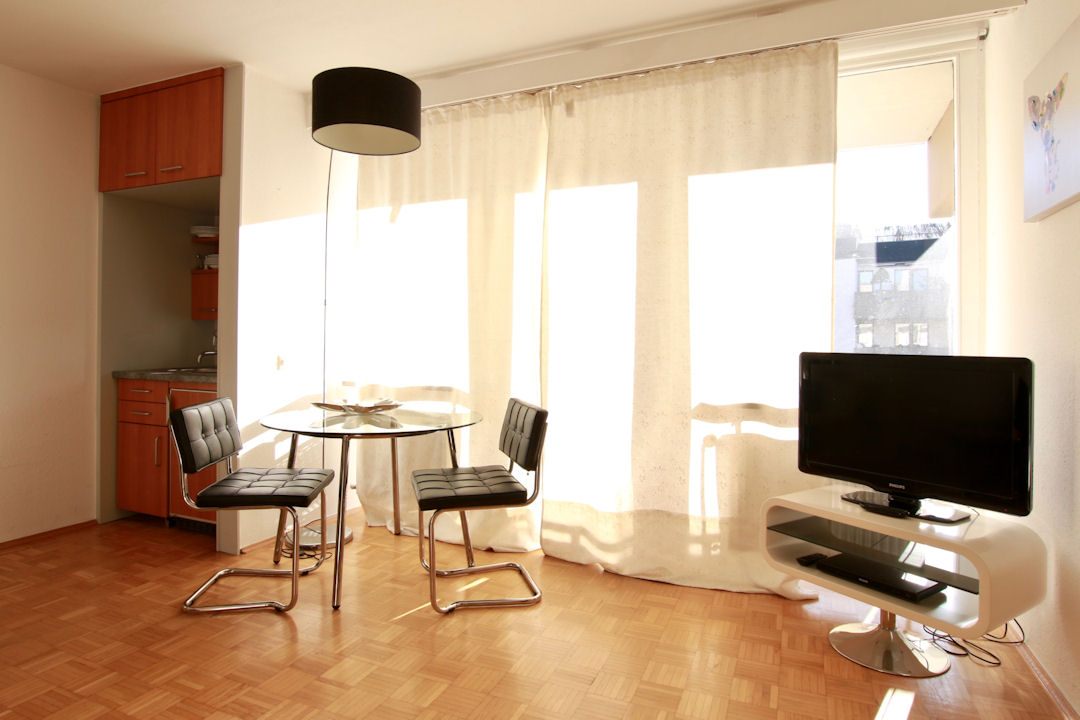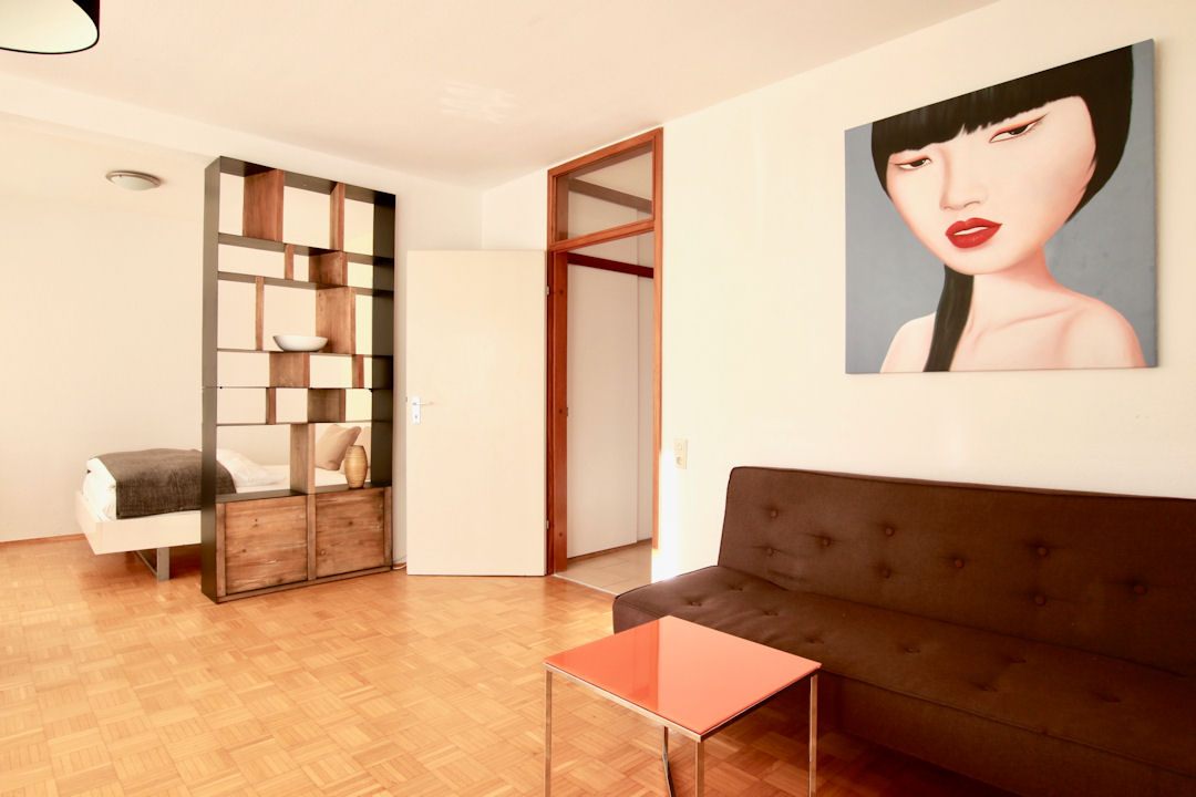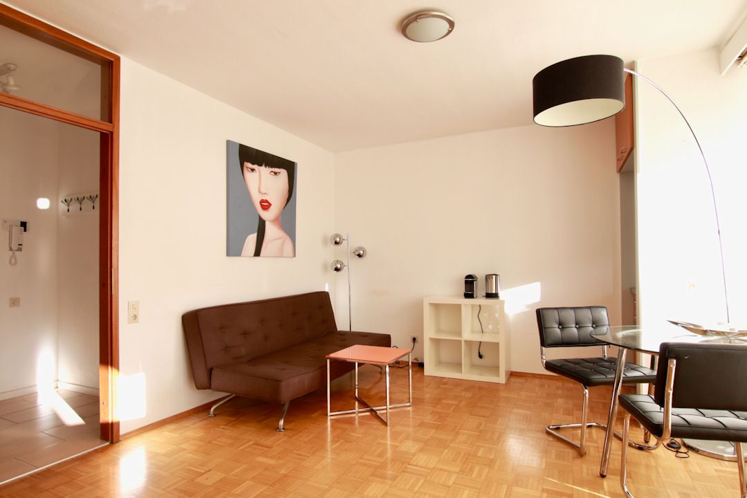 Balcony, living/bedroom with queen-size bed 1.60 m, incl. WiFi, bed linen and towels available, weekly cleaning service and change of bed linen and towels possible, non-smoking, pets not allowed, minimum term of lease 6 months, plus final cleaning 180,00 €