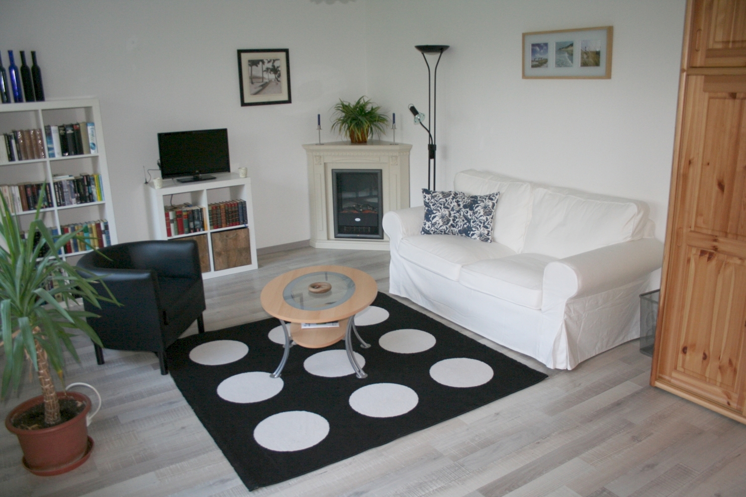 Terrace, living/bedroom with electric fireplace and single bed 0.90 m, sofa bed, bed linen and towels available, incl. WiFi internet connection, non-smoking, pets by arrangement, cellar room available, optional parking space €20/month, max. 1 person, minimum rental period 3 months — rent including additional costs: 865,00€ per month, plus electricity, including heating, plus 60 euros final cleaning
