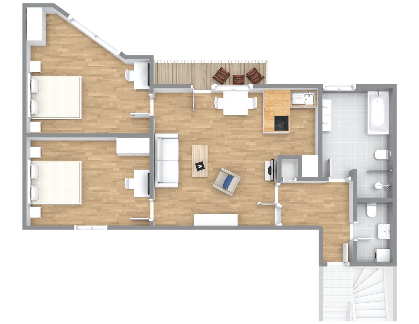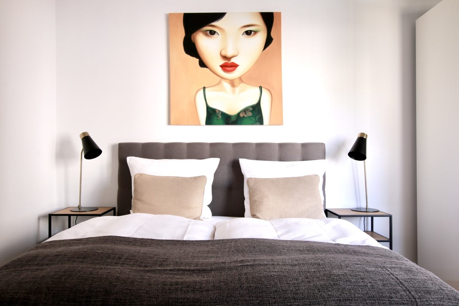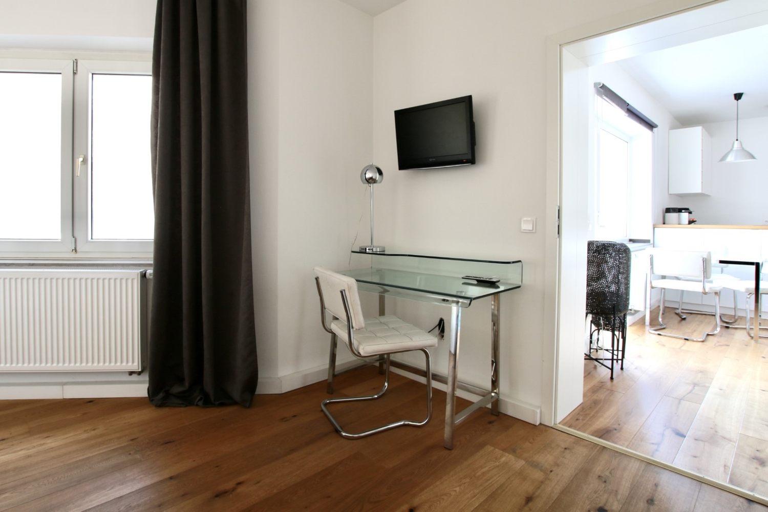 Balcony, living room, 1st bedroom with double bed 1.60 m, 2nd bedroom with queen-size bed 1.40 m, bed linen and towels available, pets not allowed, smoking only on the balcony, WiFi optionally against surcharge, cleaning and laundry service against a surcharge optionally, minimum term of lease 6 months, plus final cleaning 320,00 €