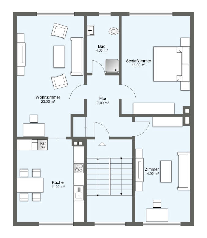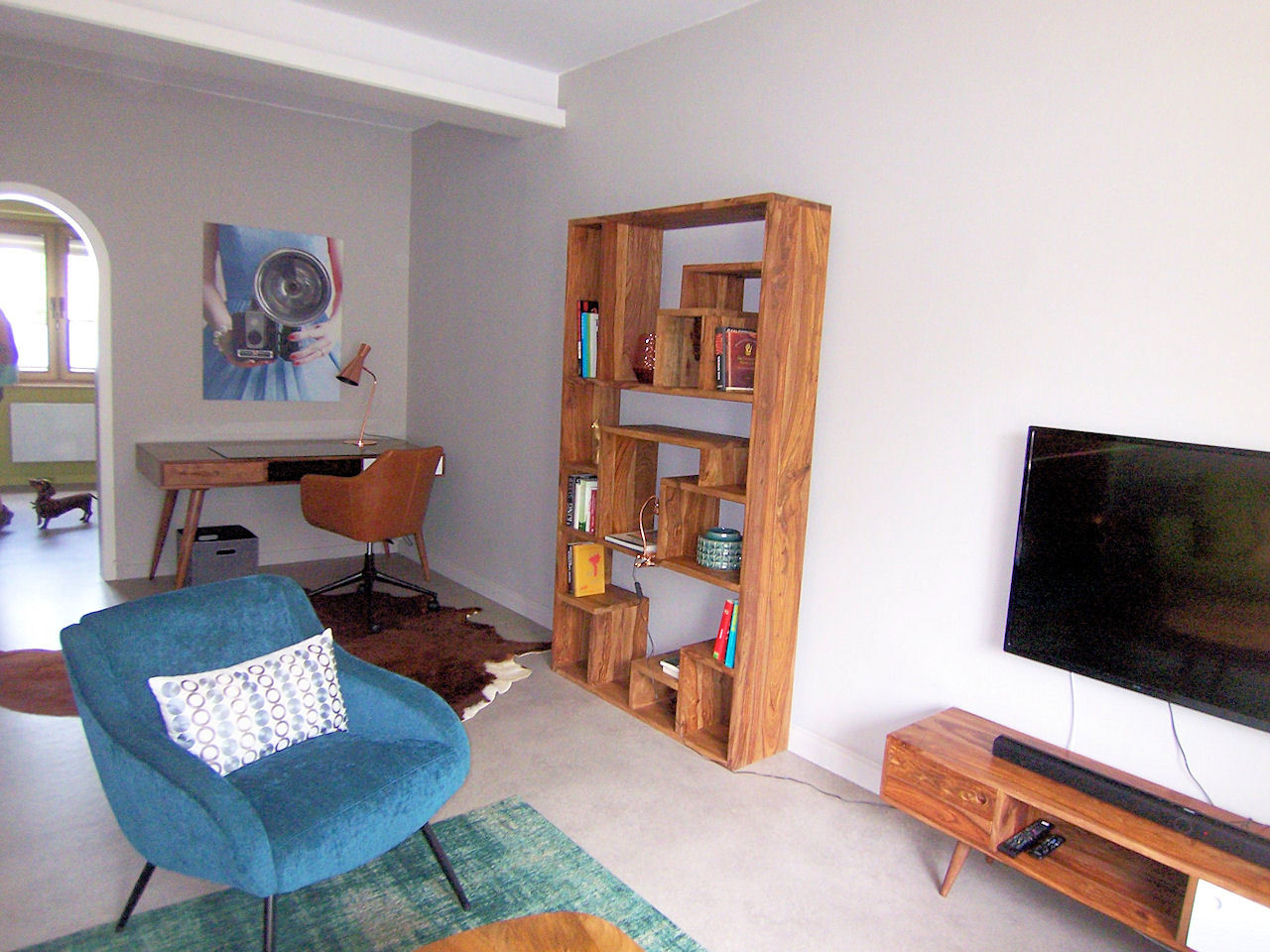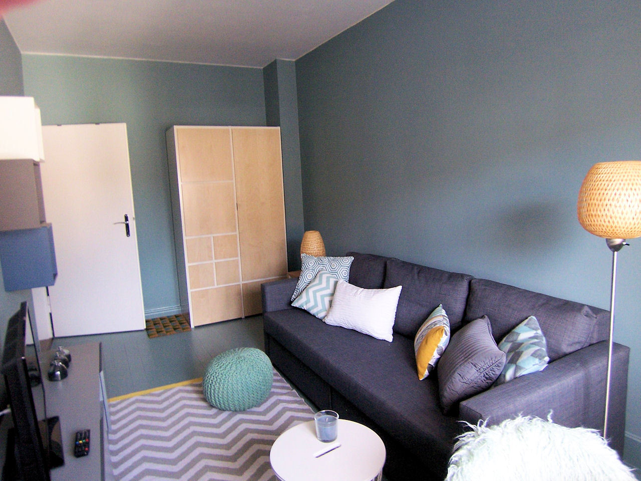 Cologne-Ossendorf: popular district on the left side of the Rhine with an excellent infrastructure; all shops for your everyday needs are close by. Various schools, such as the Montessori school, can be reached by foot – the swimming pool Ossendorfbad and the Rochuspark offer wonderful opportunities for relaxation. Especially popular with business people due to proximity to companies like Siemens, Coca Cola, Endemol and NetCologne. The Coloneum is also located in Ossendorf. Very good public transport connections: tram line Margaretastraße (100 meters from the apartment) takes you to the main train station in 16 minutes.