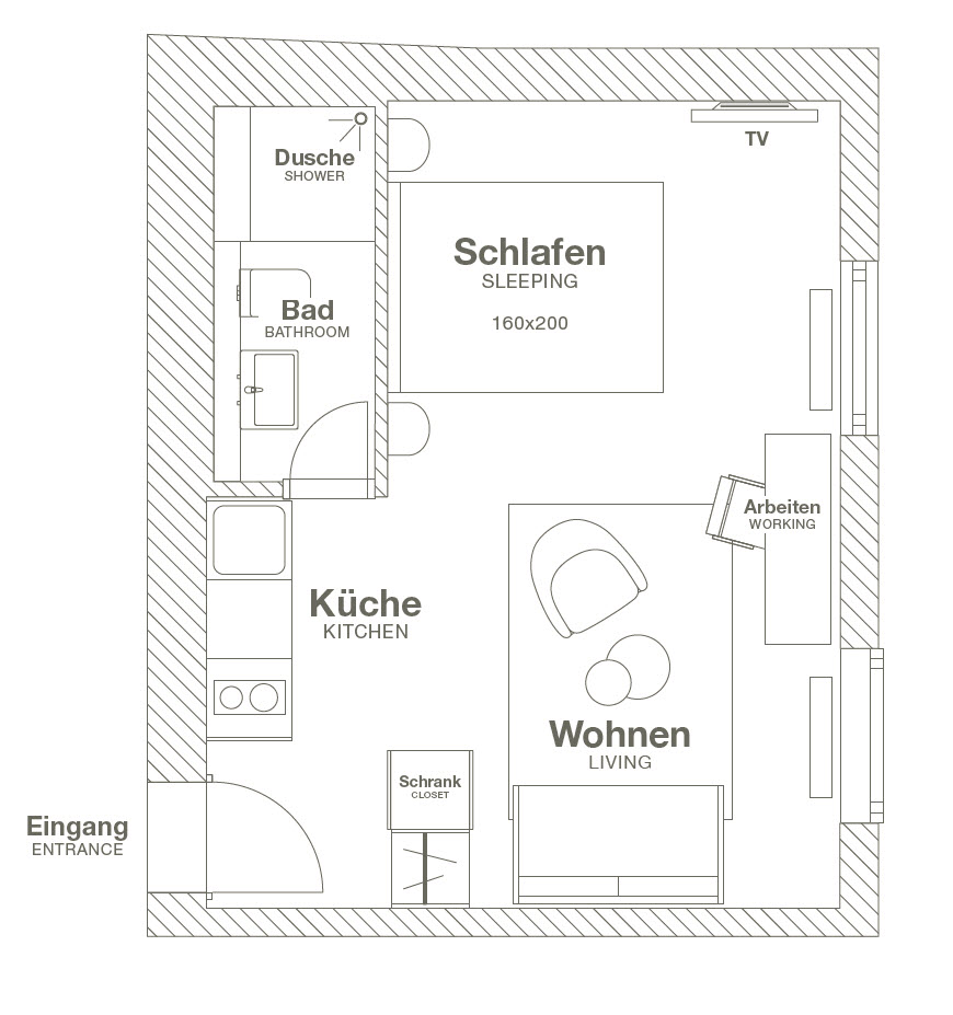 Wohn-/ Schlafraum mit franz. Bett 1,40m, inkl. W-Lan Internetanschluss, Bettwäsche und Handtücher nicht vorhanden, Reinigungsservice nach Absprache gegen Aufpreis, Tierhaltung nicht gestattet, Nichtraucher, max. 2 Personen, 2.Person gegen Aufpreis, Mindestmietdauer 6 Monate