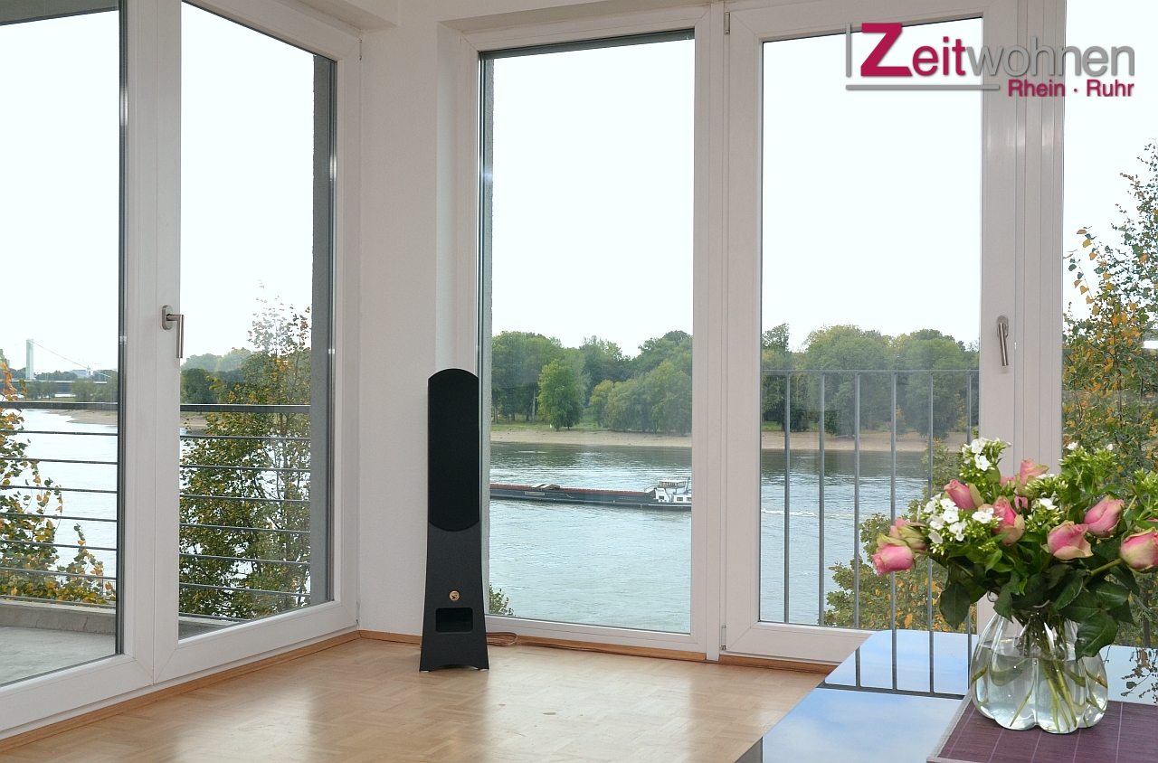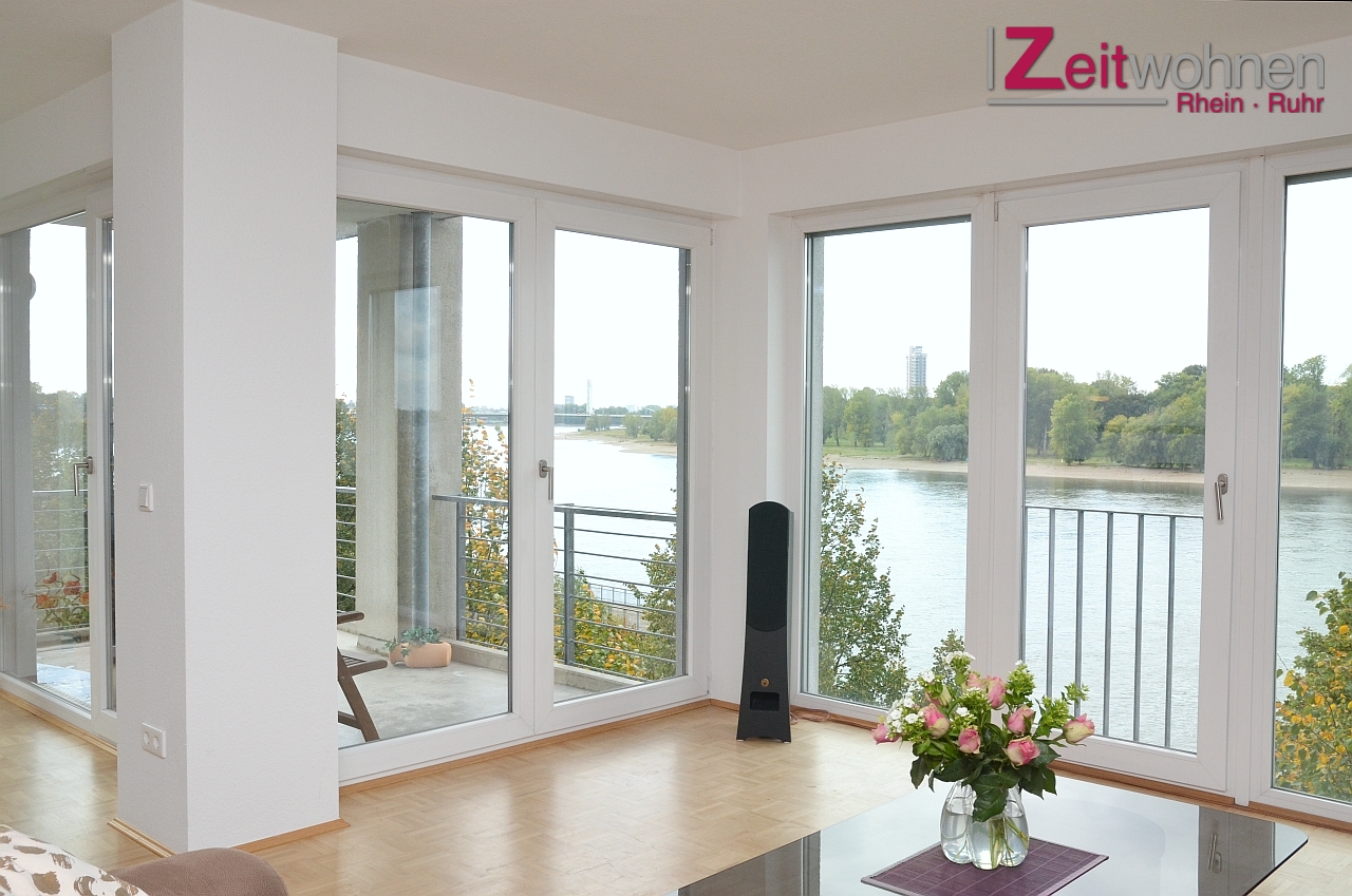 Covered terrace, living room with floor-to-ceiling windows to the Rhine, bedroom with double bed 1.60 m and bathroom en suite, guest room with single bed 1.00 m, including bed linen and towels available, including underground parking space – barrier-free access, pets are not allowed, non-smokers, minimum rental period 6 Months, max. 2 adults, 1 grown up child upon request.
