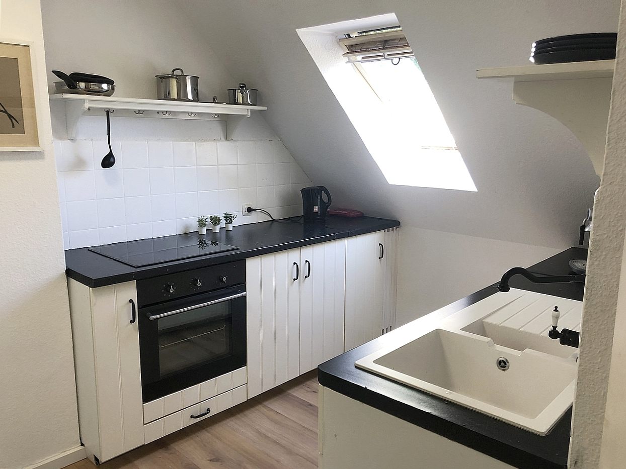 moderne Möblierung, Laminat- und Fliesenboden, separate Einbauküche mit Backofen, Geschirrspüler, Kaffeemaschine, Tageslicht Wannenbad mit Dusche, Flatscreen TV, WLAN Internetanschluss, Waschmaschine im Keller