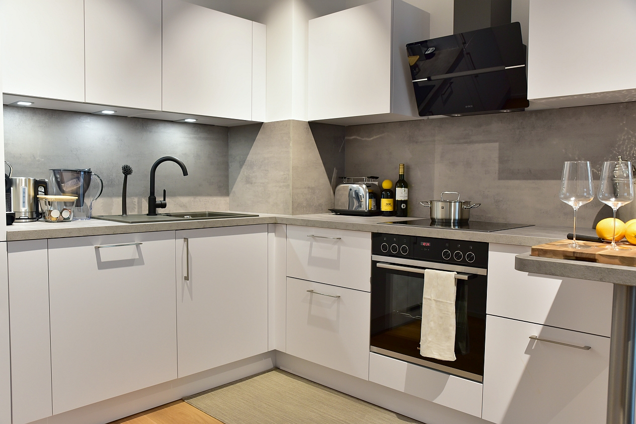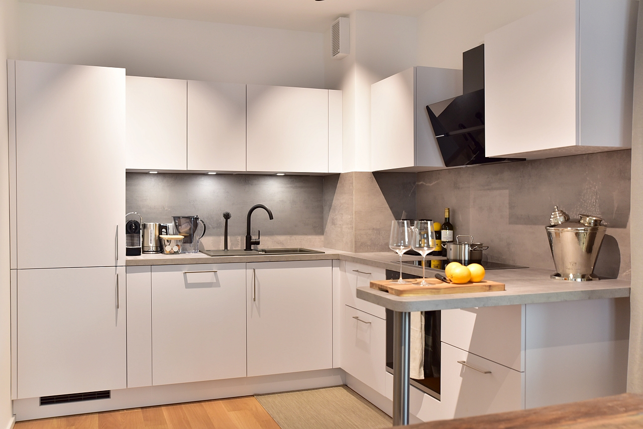 Modern furnishings, real wood floorboards, integrated fitted kitchen with dishwasher, oven and microwave, daylight shower room, Smart TV, WIFI internet access, washing machine for sole use in private cellar compartment