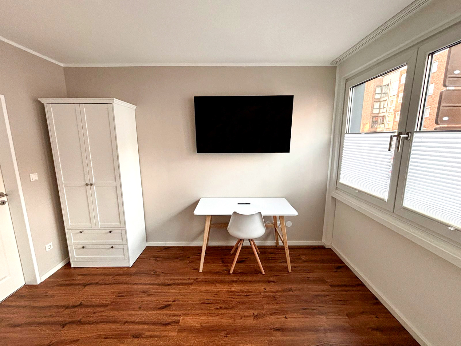Living/bedroom with box-spring bed 1.60 m, bed linen and towels available, pets by arrangement, non-smokers welcome, max. 1 person, minimum rental period 6 months