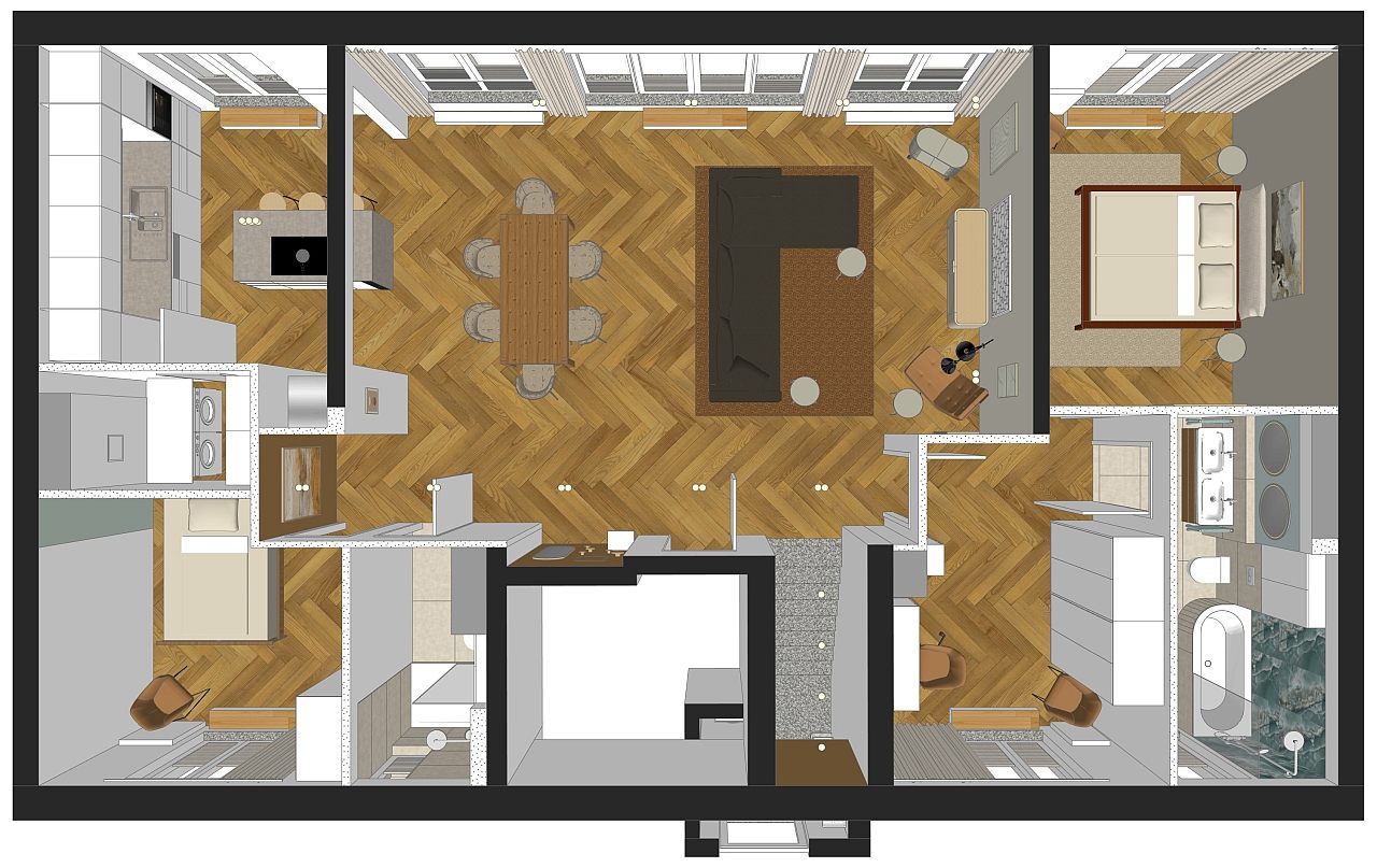 private elevator from the garage to the flat, living room, study, bedroom with 1.40 m bed, bedroom with 180 cm double bed, bed linen and towels provided, including WiFi internet access, pets not allowed, including underground parking space, non-smoking, max. 4 people, rent applies to 2 persons, rate increases with each additional occupant. In case of additional occupants, full rental price offered upon request