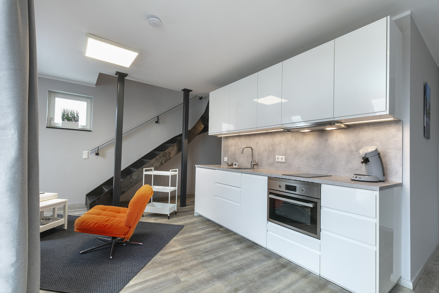 • Moderne und hochwertige Möblierung, Design-Vinylboden, voll ausgestattete Einbauküche mit Geschirrspülmaschine, Mikrowelle, Backofen, Cerankochfeld und Kaffeemaschine, Tageslicht Duschbad, Smart-TV, Glasfaser-WLAN-Internetanschluss (1 GB/S), moderne Gegensprechanlage, Waschmaschine und Trockner im Waschraum im Keller.