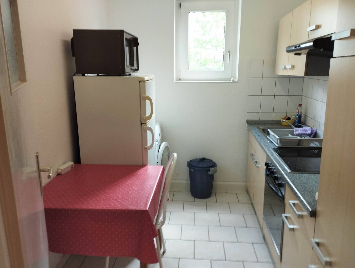 Moderne Möblierung, Laminat- und Fliesenboden, voll ausgestattete separate Einbauküche, Tageslichtbad mit Badewanne und Duschmöglichkeit, WLAN Internetanschluss (100Mbit/s), Smart-TV, Waschmaschine in der Wohnung. Trockner im Keller zur Mitbenutzung.