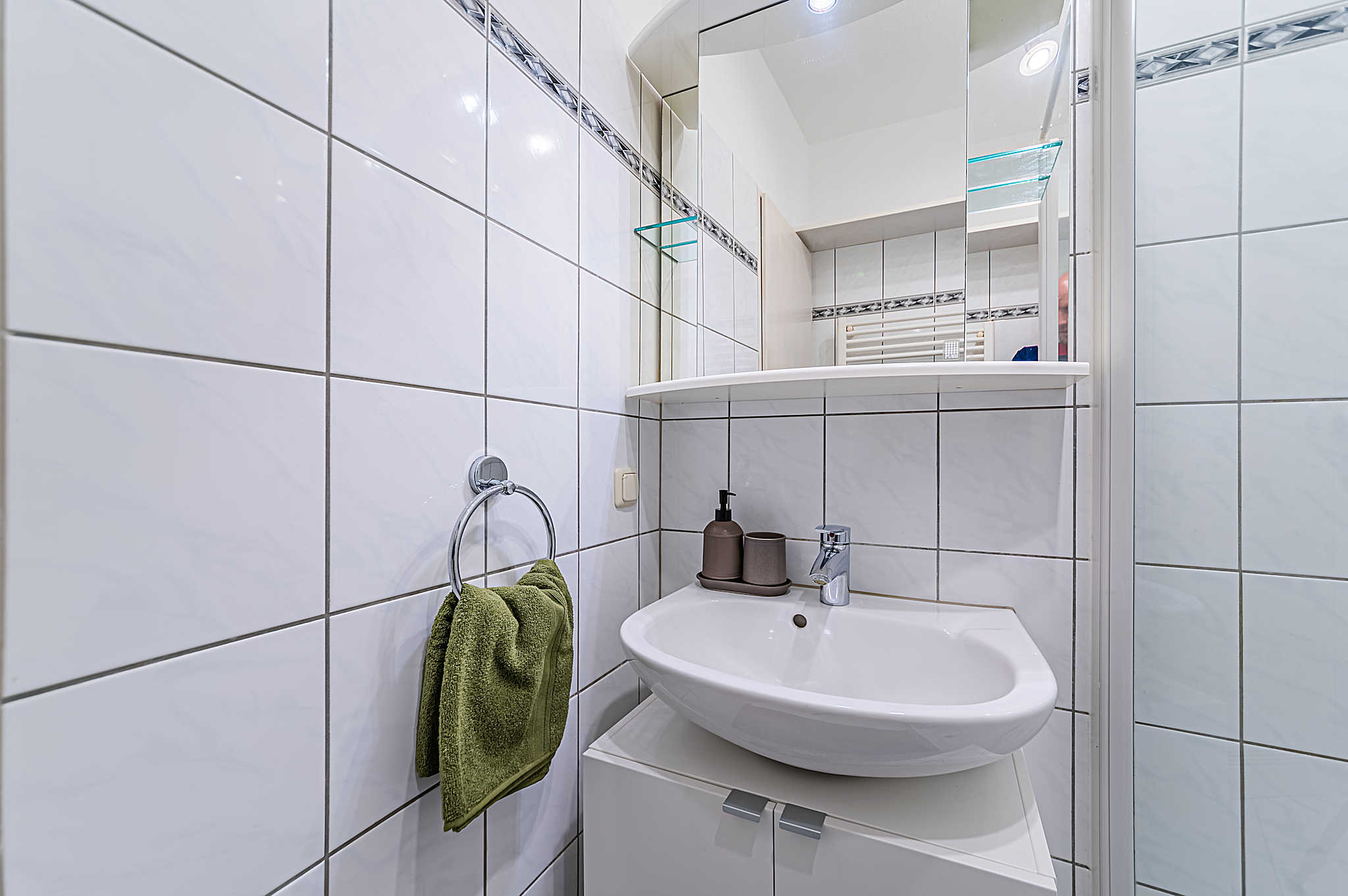 - Tiled floor with carpet